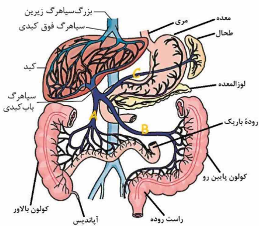 ت. فقط خون خارج شده از اندامهای مرتبط با دستگاه گوارش به درون سیاهرگ باب کبدی تخلیه میشود.