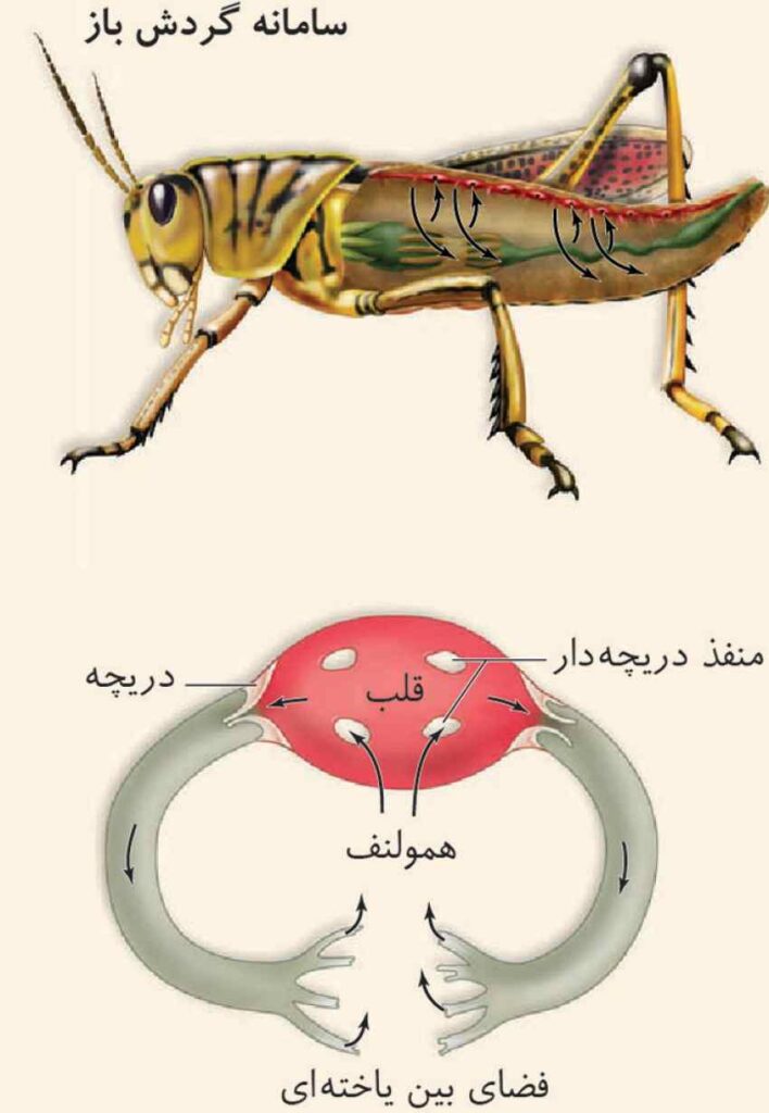 در سامانه گردش باز، قلب مایعی به نام همولنف را به حفرههای بدن پمپ میکند.
