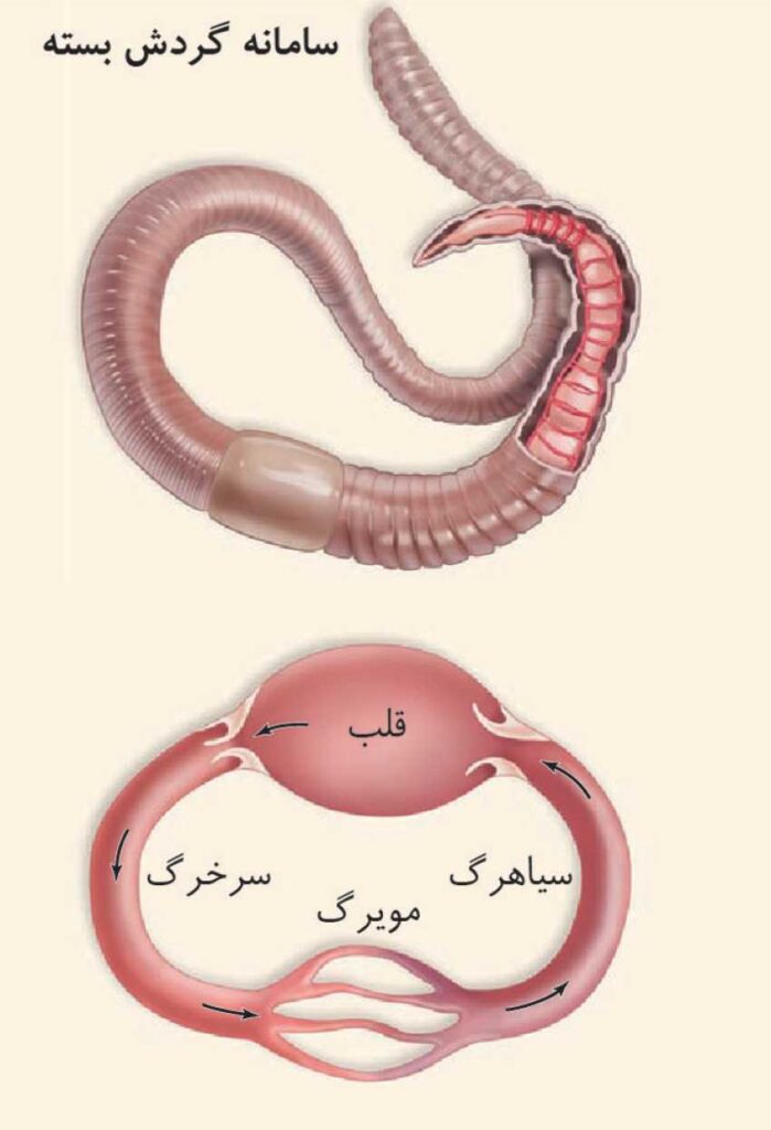 سادهترین سامانه گردش بسته در کرم خاکی وجود دارد.