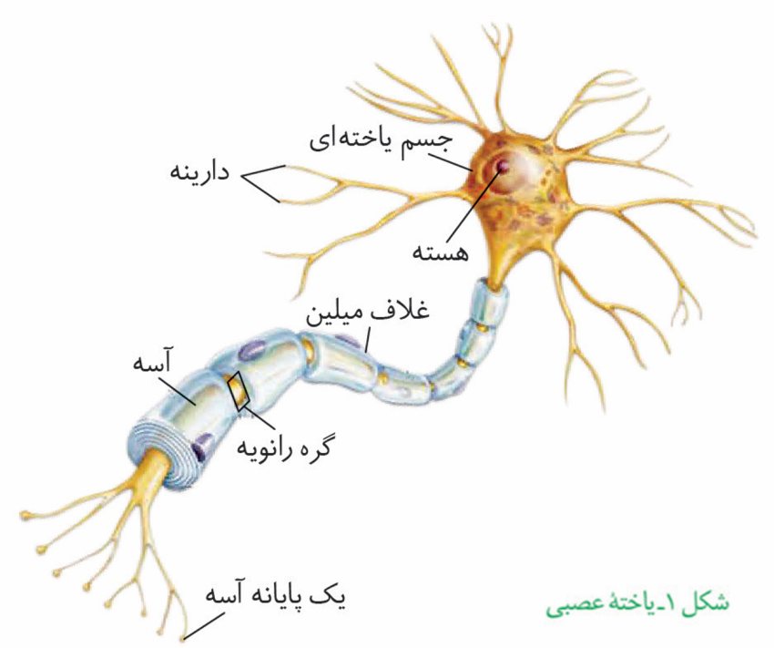 ۱-دندریت(دارینه) رشتهایست که پیام را دریافت و وارد جسم سلول میکند.