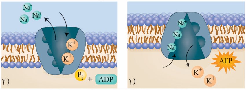 تعداد یون پتاسیم خروجی بیشتر از یونهای سدیم ورودیست؛ زیرا غشا به این یون نفوذپذیری بیشتری دارد.
