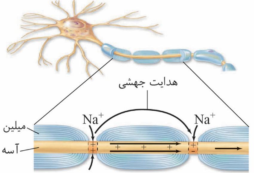 در بخشهای میلیندار نورون هدایت جهشی و در بخشهای بدون میلین هدایت نقطه به نقطه است.